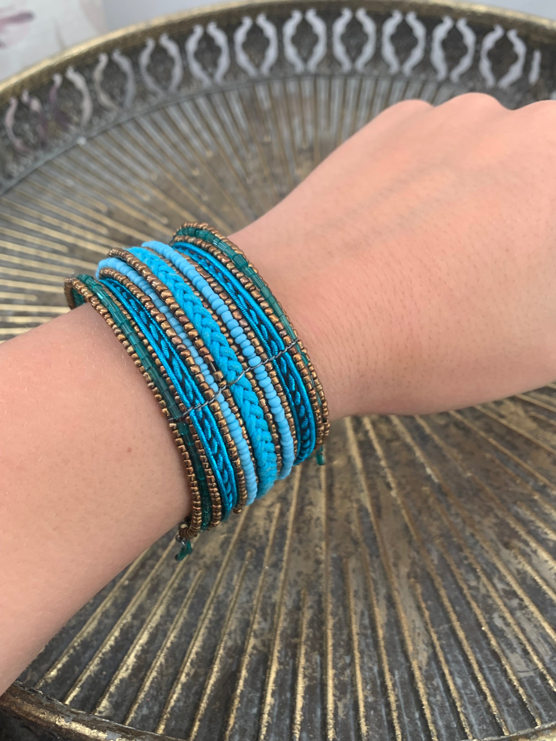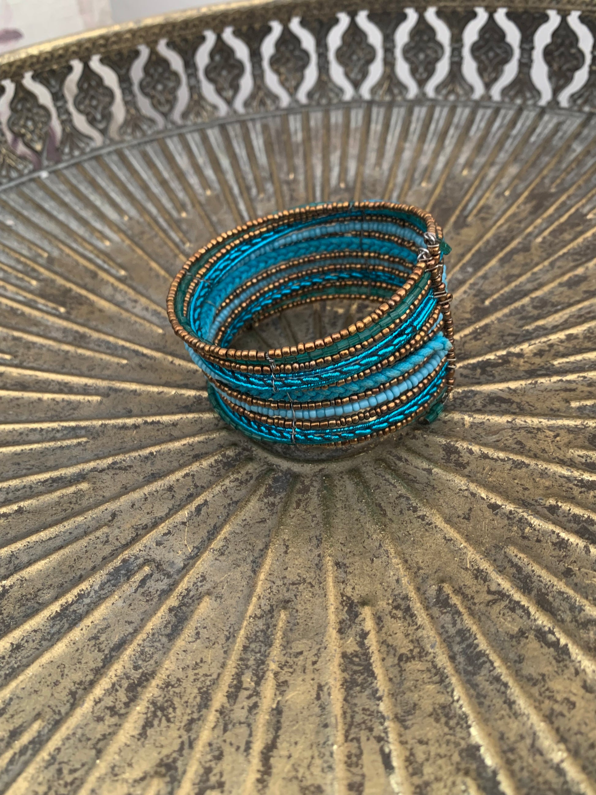 Wide Cuff Beaded Bracelet Turquoise and Copper
